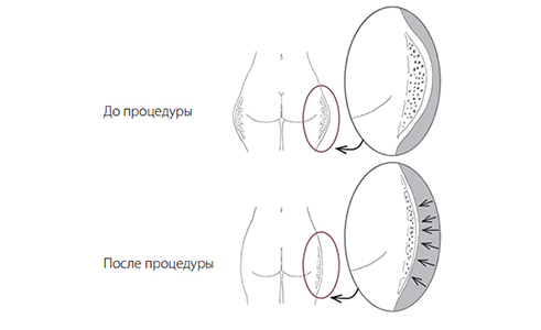 В очень редких случаях, возможность возникновения неровного контура поверхности кожи, проходящего самостоятельно в период 10–15 дней. Процедура является практически безболезненной и проводится в течение 15–30 мин.