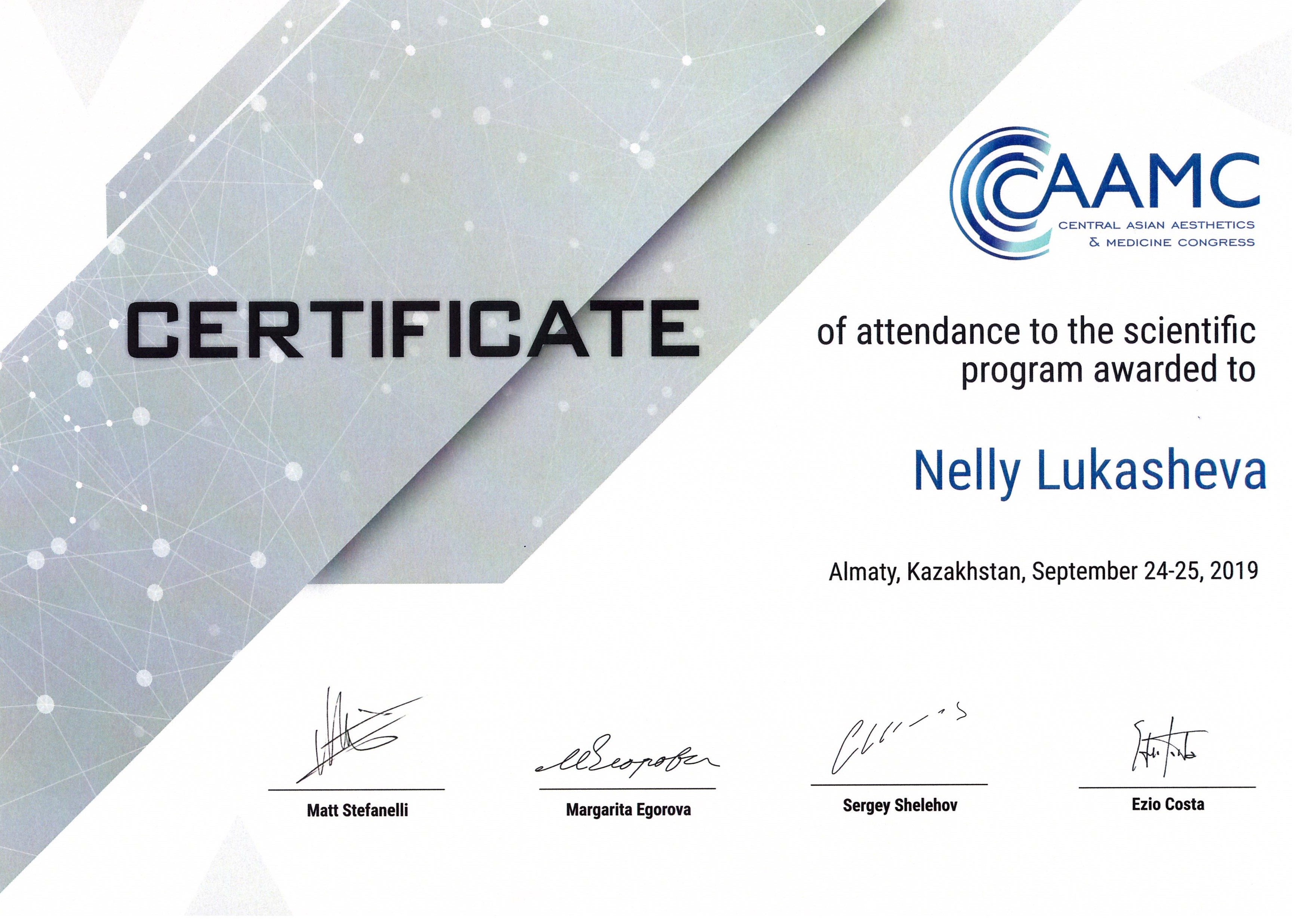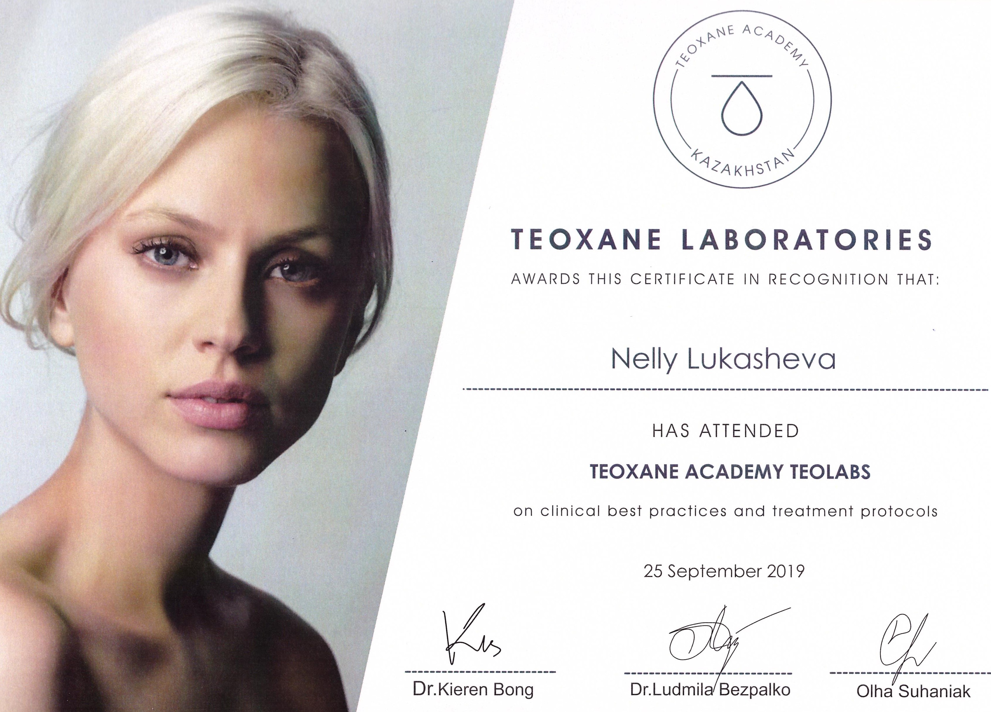 - Переподготовка по специальности «Дерматокосметология». Каз НМУ им. С. Д. Асфендиярова, 2010 г.